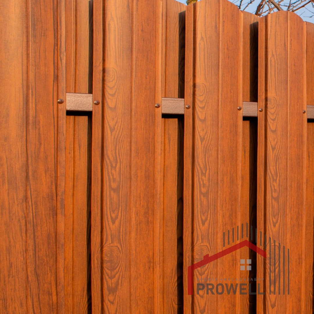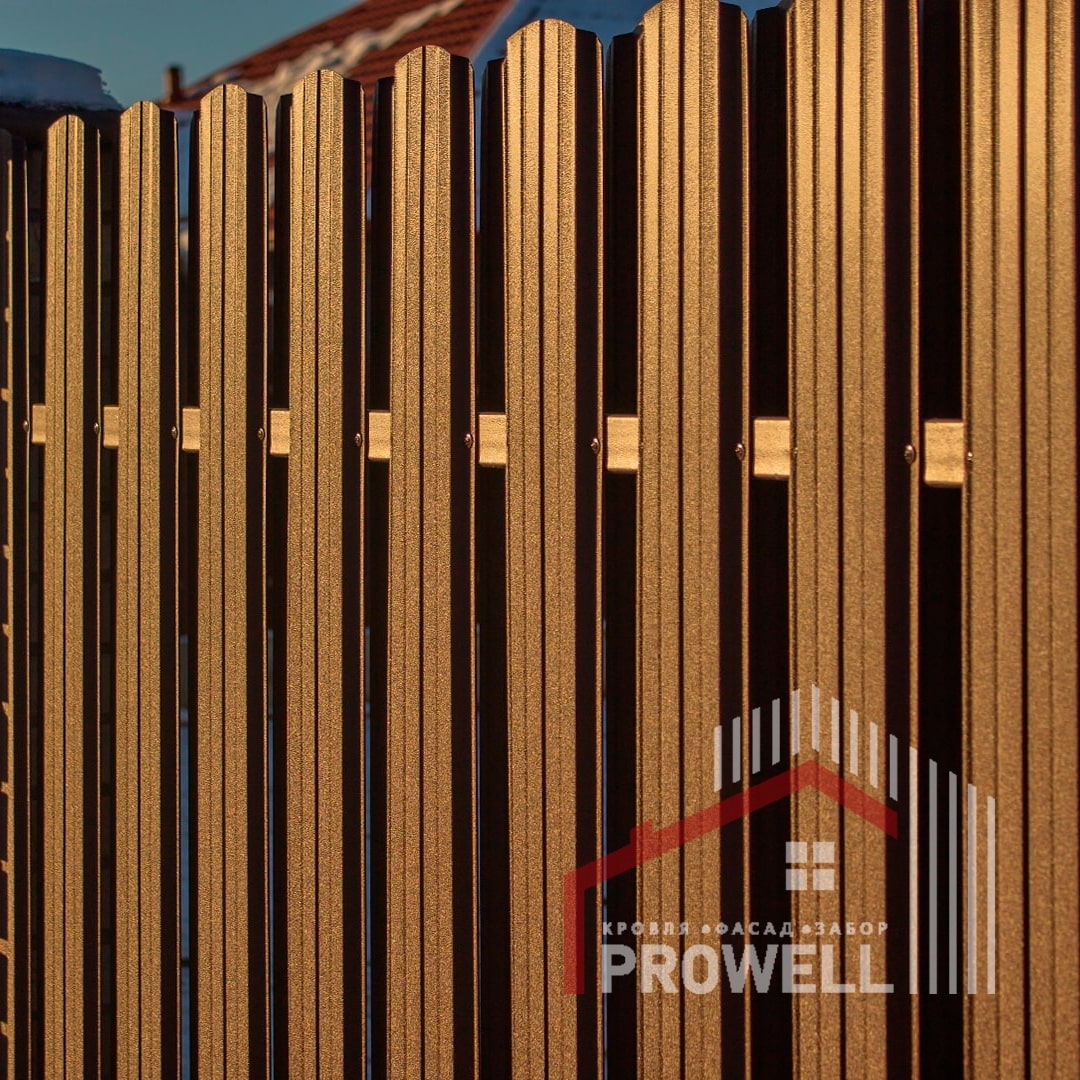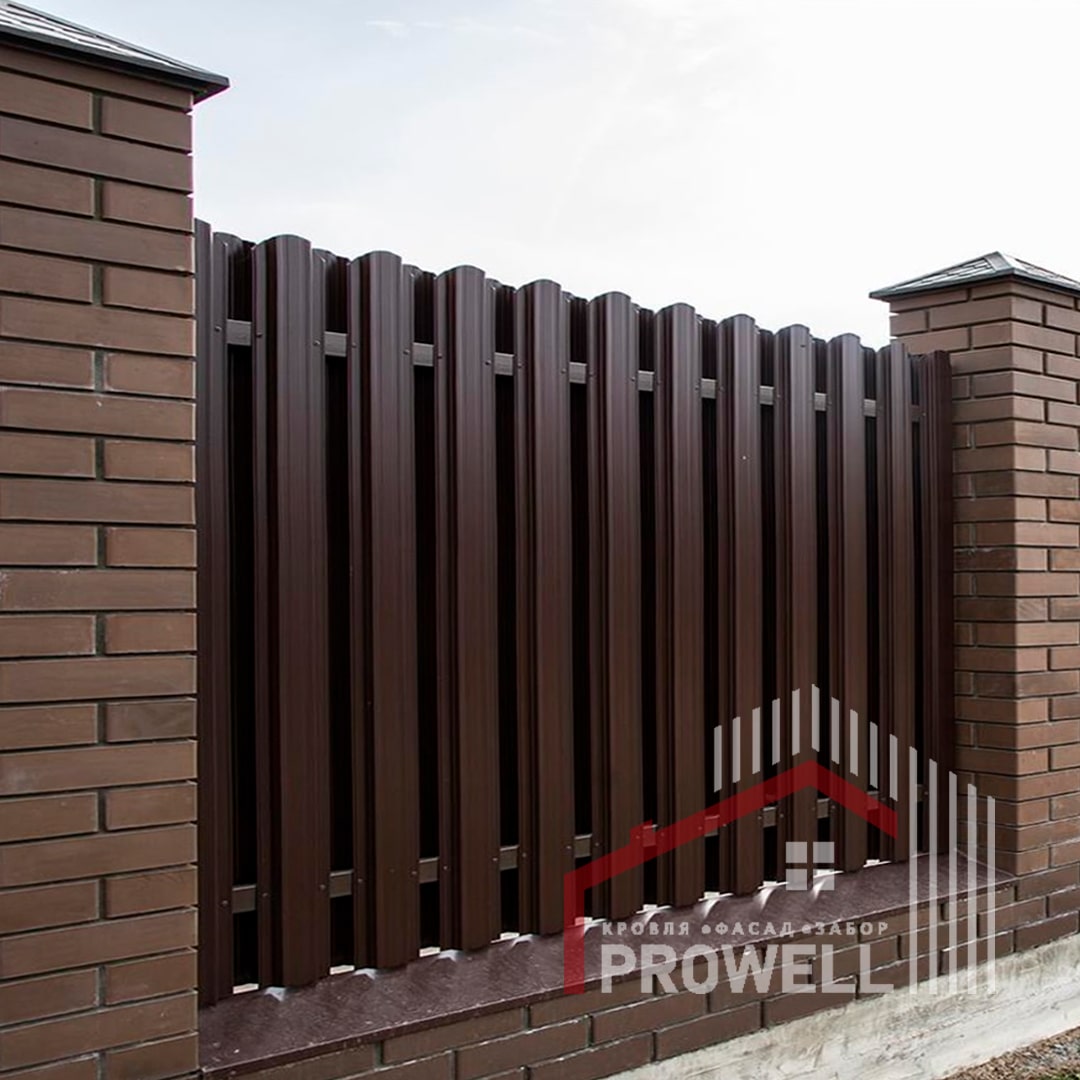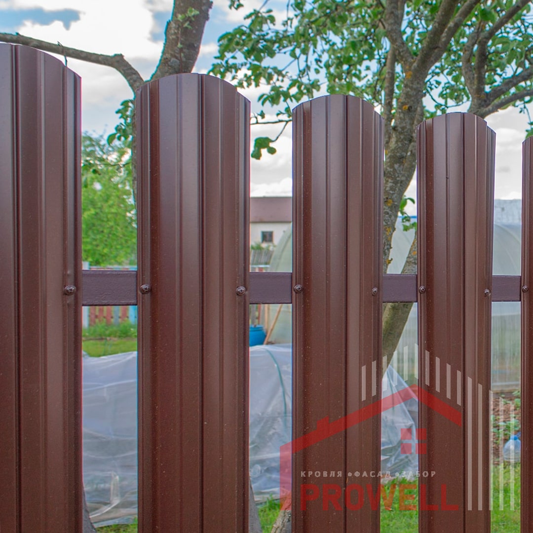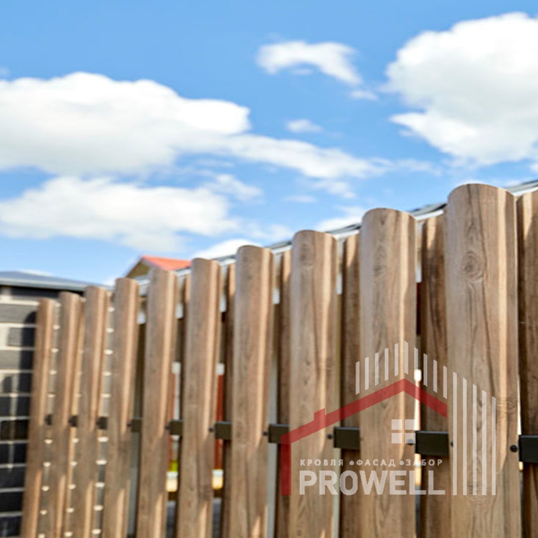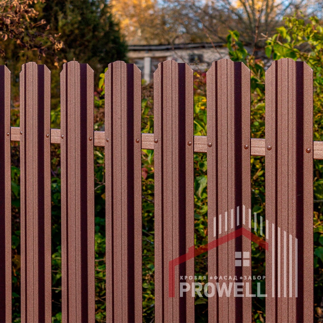 Модель этого металлоштакетника подходит тем покупателям, которые хотят забор, произведенный из металлического штакетника, но чтобы он выглядел, как доска.