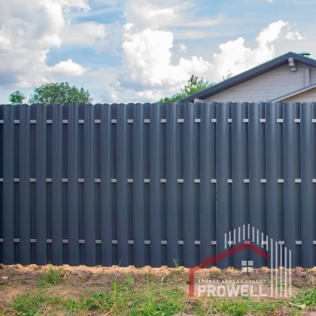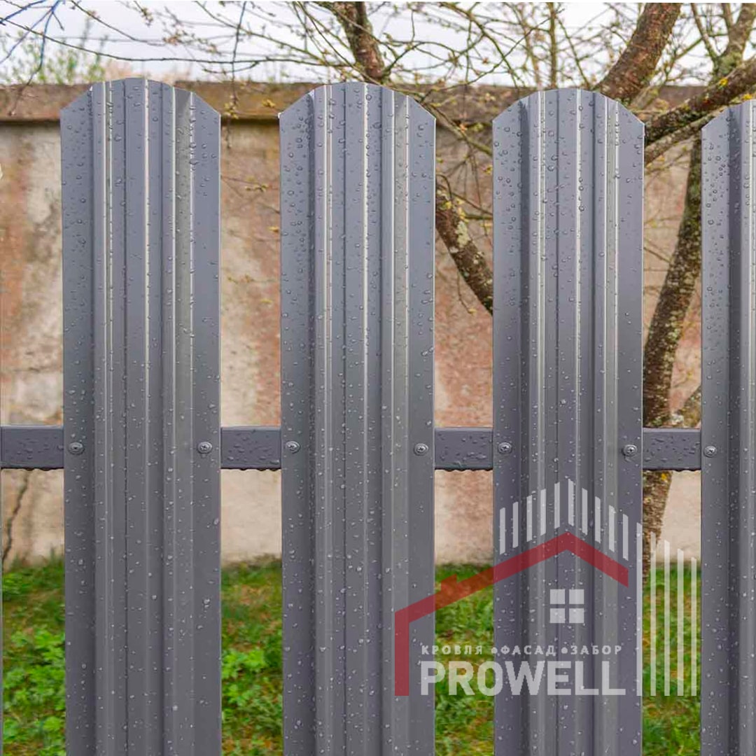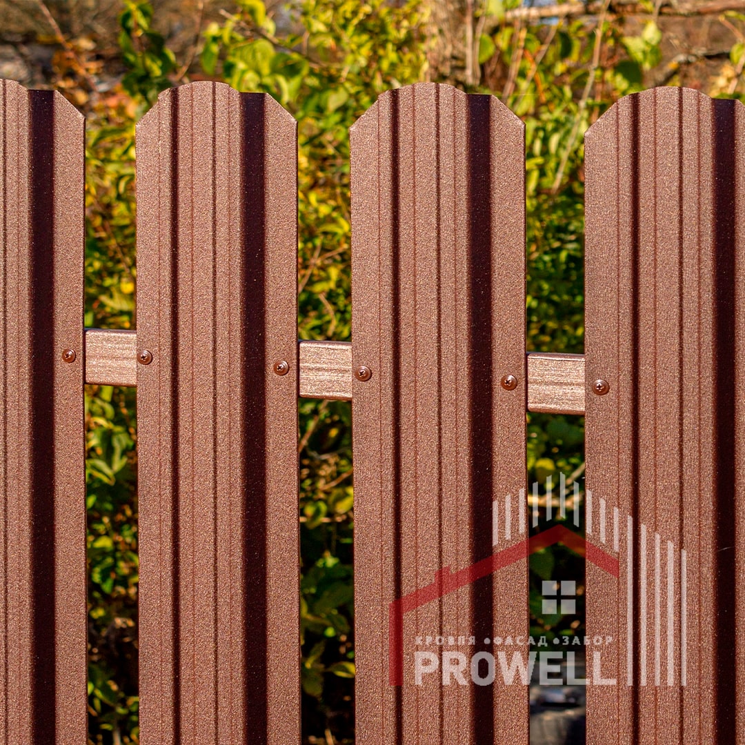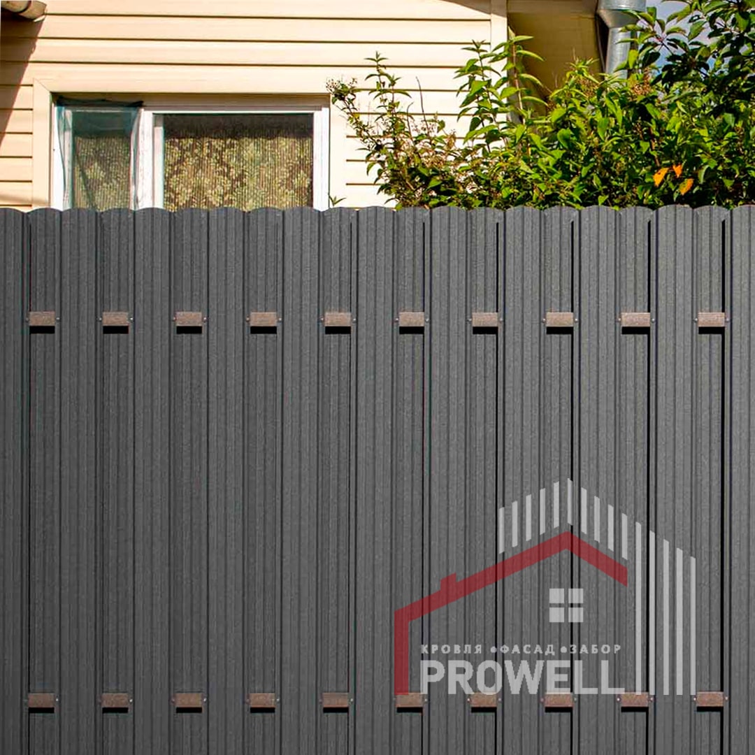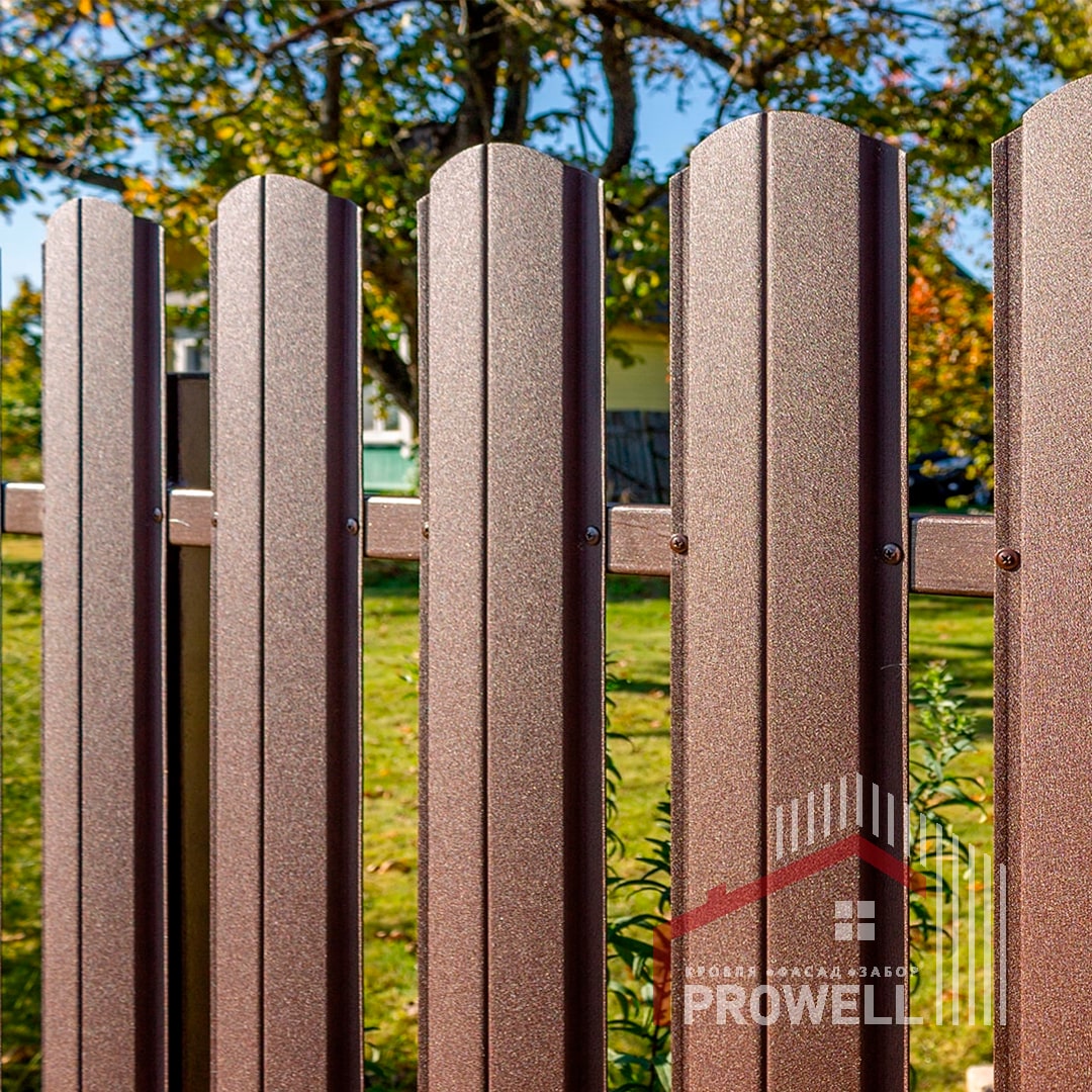 Модель этого металлоштакетника подходит тем покупателям, которые хотят забор, произведенный из металлического штакетника, но чтобы он выглядел, как доска.