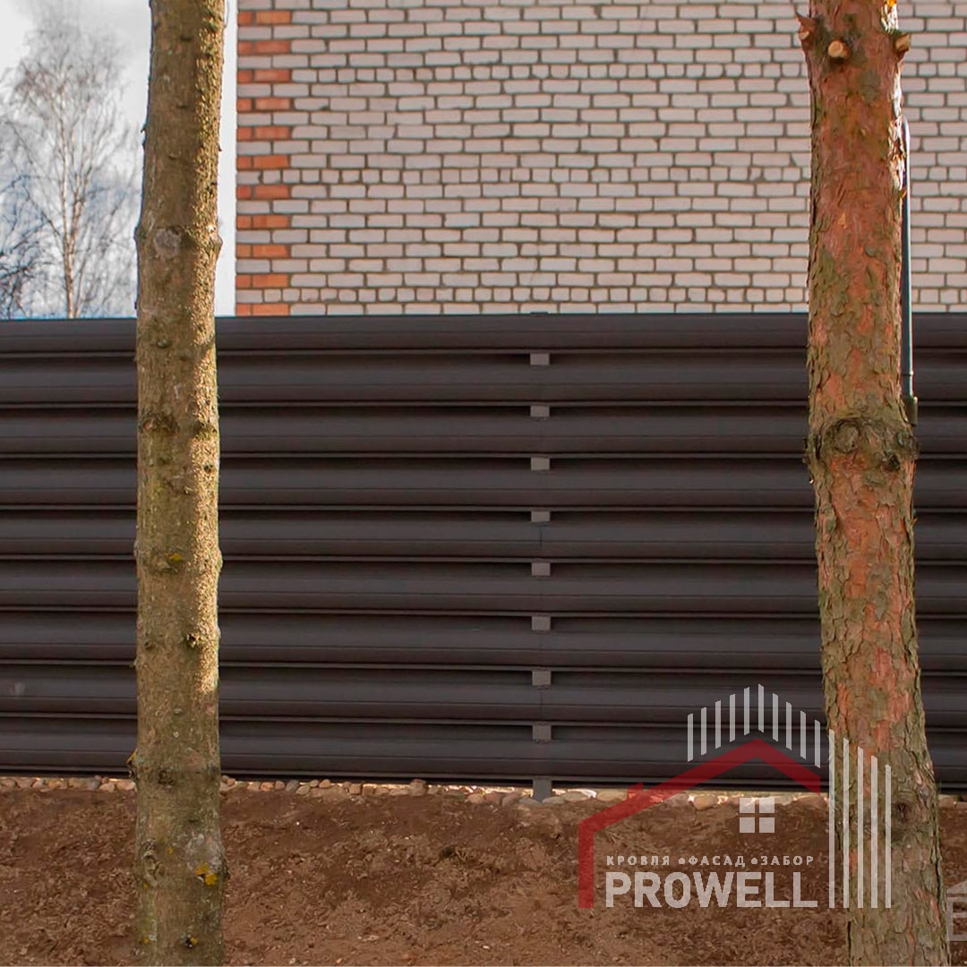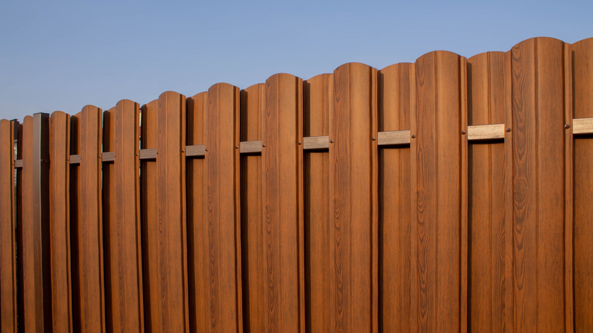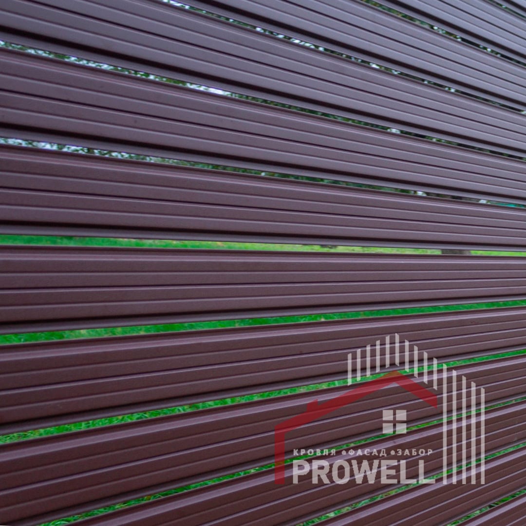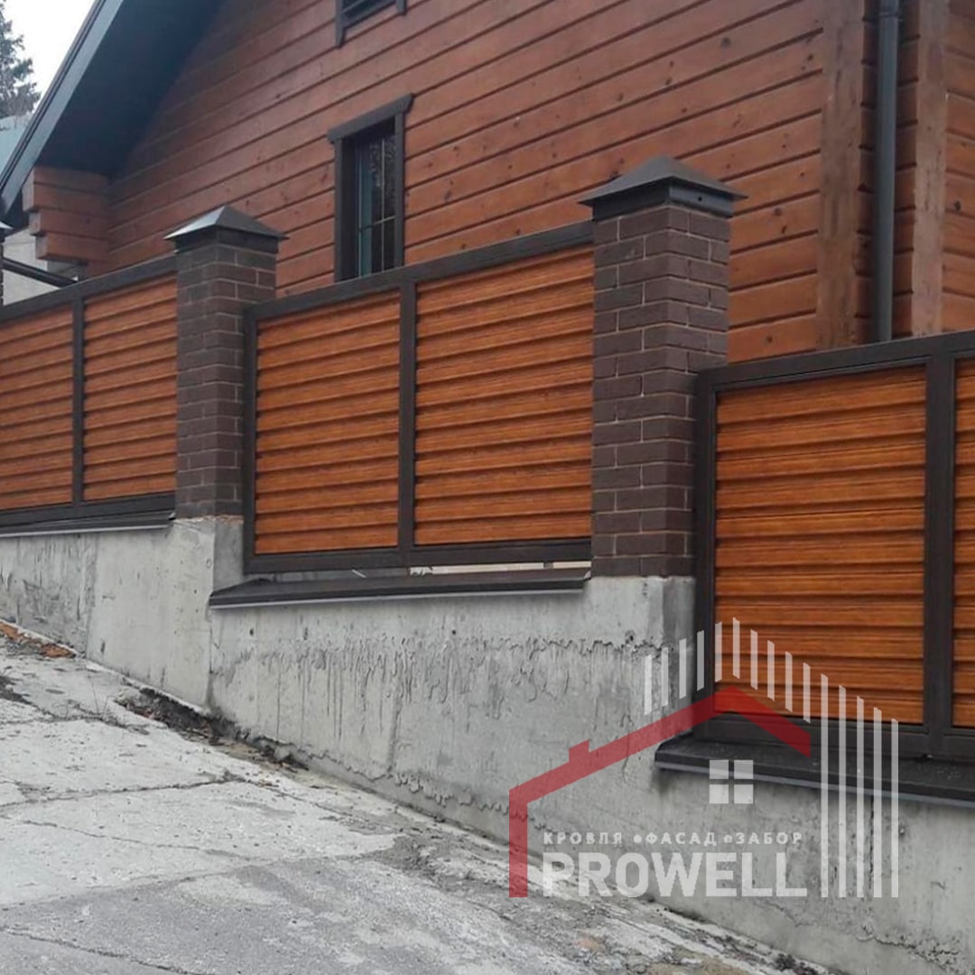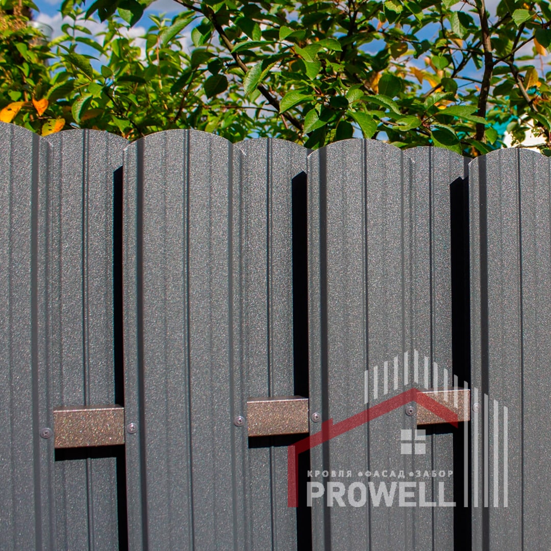 Модель этого металлоштакетника подходит тем покупателям, которые хотят забор, произведенный из металлического штакетника, но чтобы он выглядел, как доска.