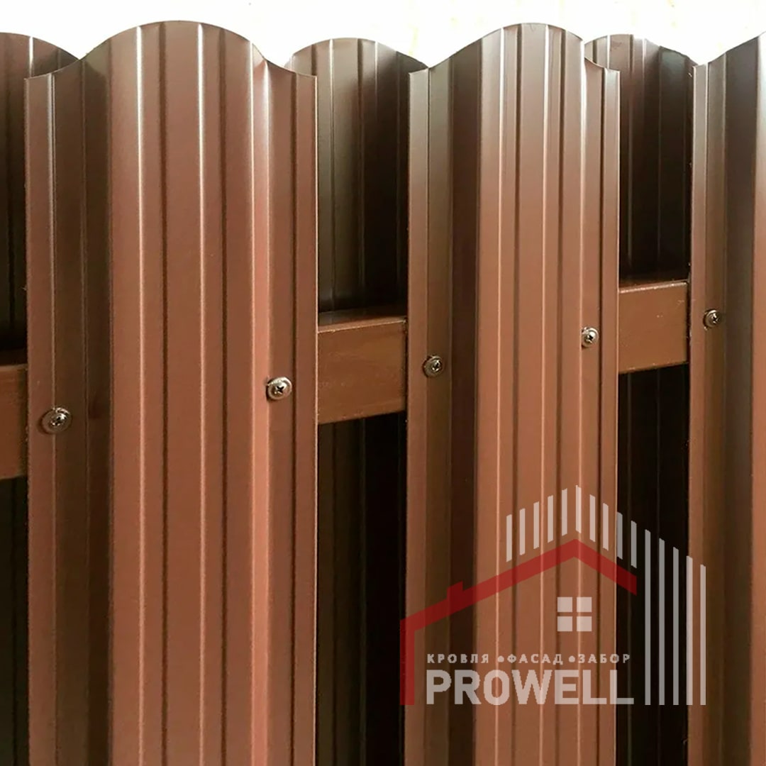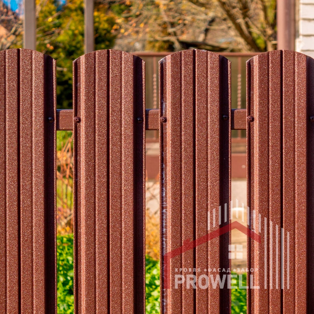 Самый популярный вид профиля для металлоштакетника. Специальные ребра жесткости увеличивают стойкость к воздействию внешней среды. Односторонняя и двухсторонняя окраска. Отлично подходит как для одностороннего заполнения забора, так и для двустороннего.